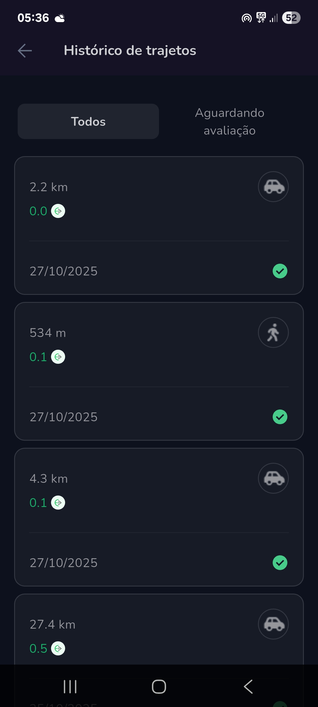Trajetos com a opção "trilhos" está sendo registrada como "carro", assim, obtendo 0.0 de pontos, prejudicando-me na competição