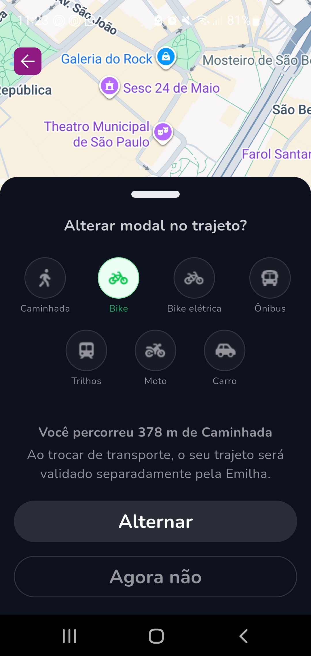 Não consigo alterar a modalidade do veículo para bike